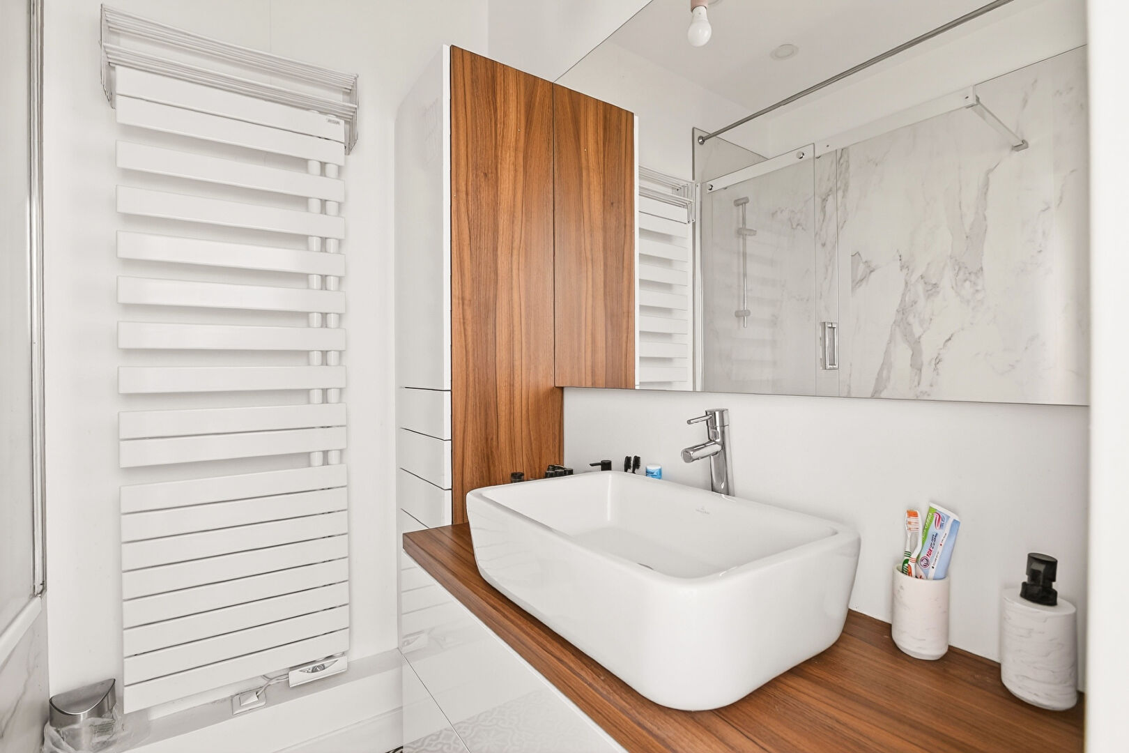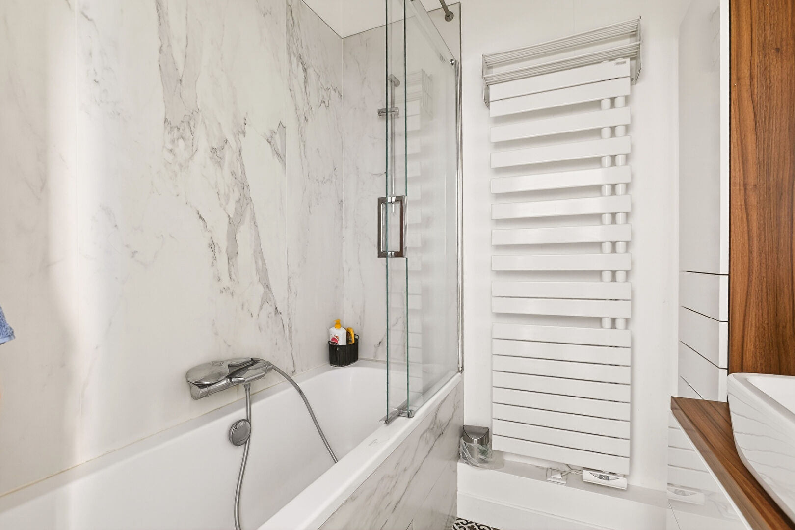 A 5min à pied de la gare de Clamart et du futur métro 15, au deuxième étage, appartement 3 pièces traversant clés en main entièrement refait par un architecte, comprenant :