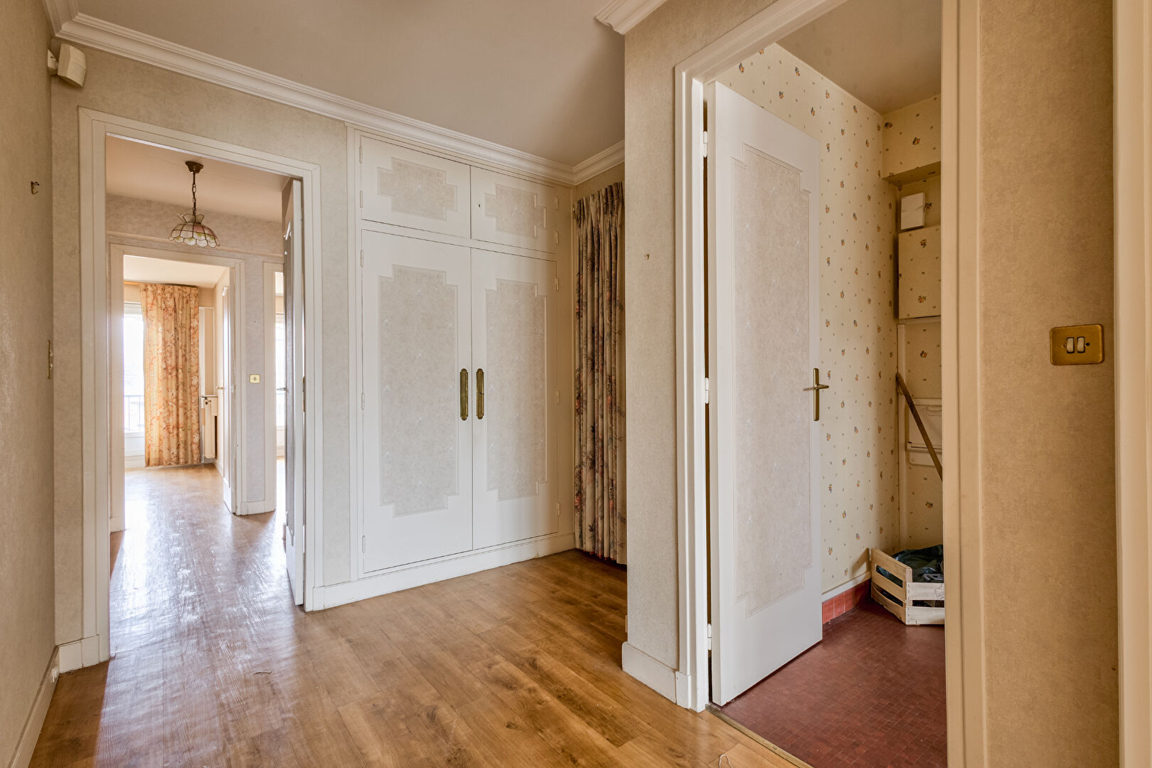 Situé dans une copropriété bien entretenue, l’appartement s’ouvre sur une entrée spacieuse avec de nombreux rangements et un espace débarras, desservant les pièces en étoile.