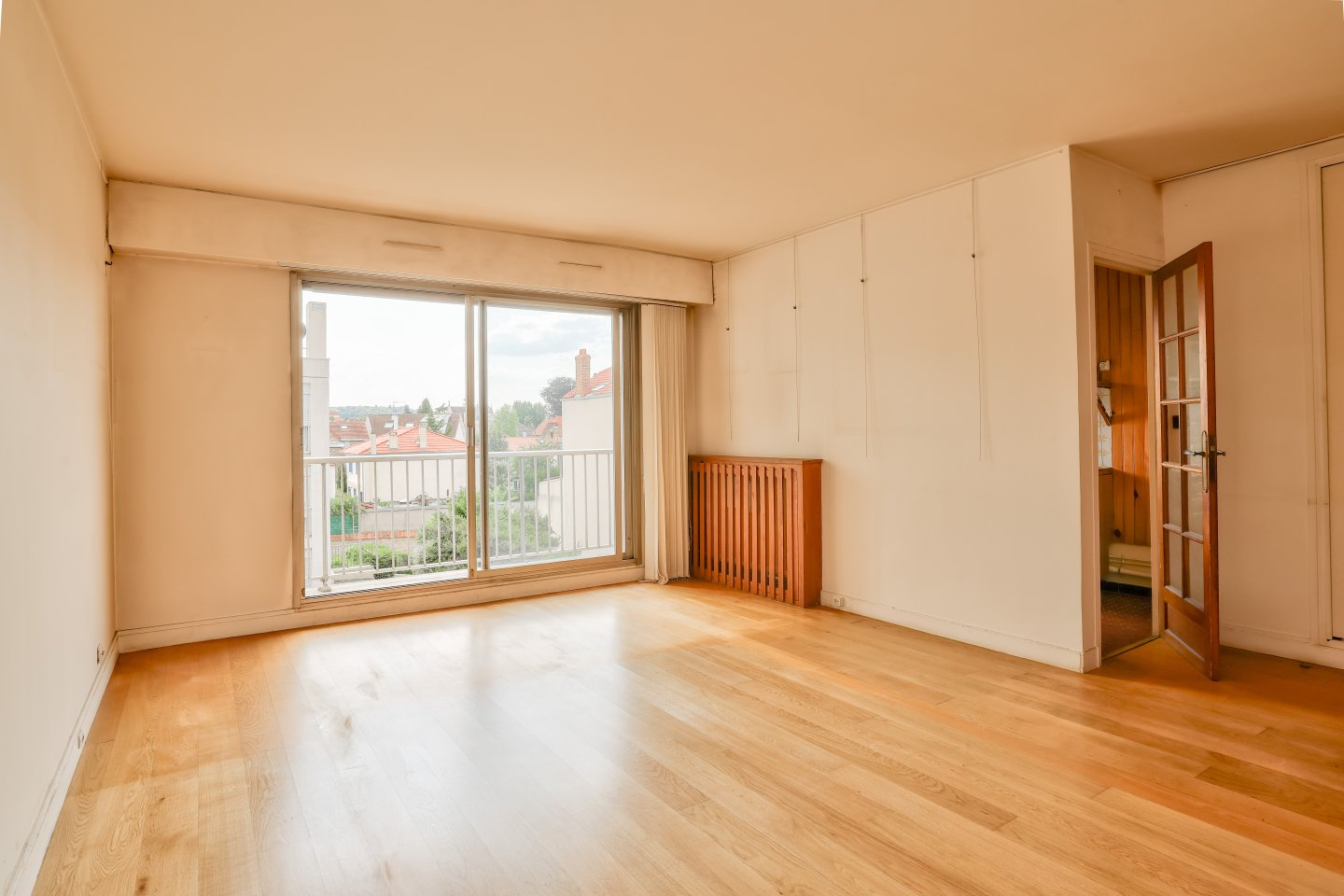 Le séjour spacieux orienté ouest donne sur le balcon de 6m2 illuminé par le ciel.