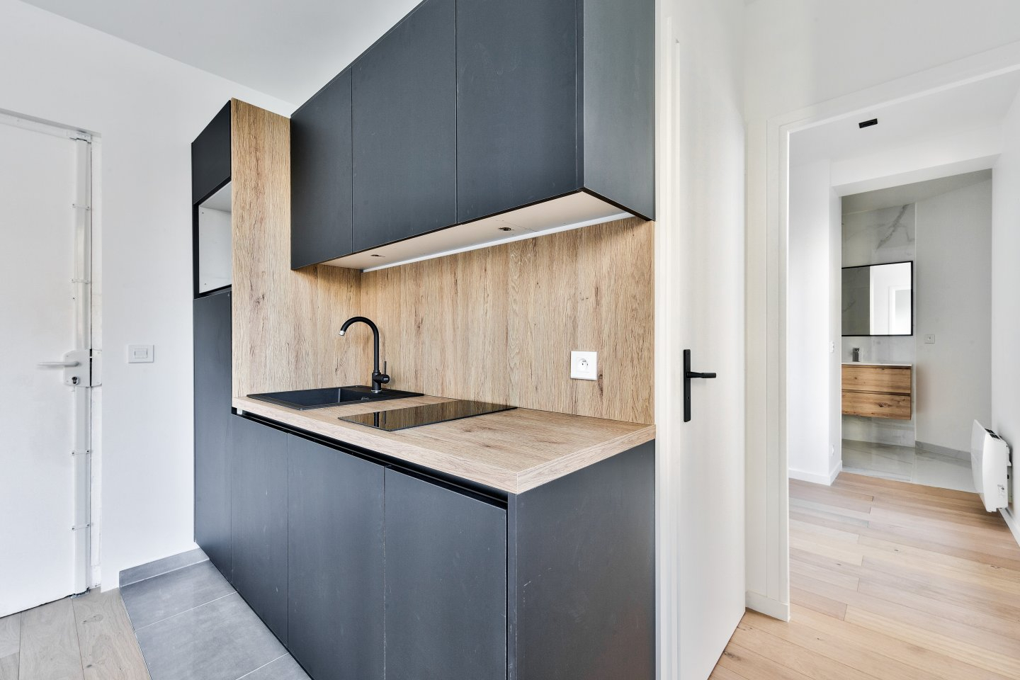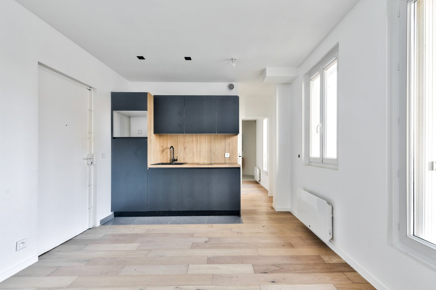 En plein coeur du quartier de la Gare, dans une petite copropriété, un appartement de deux pièces entièrement refait à neuf avec de beaux matériaux.