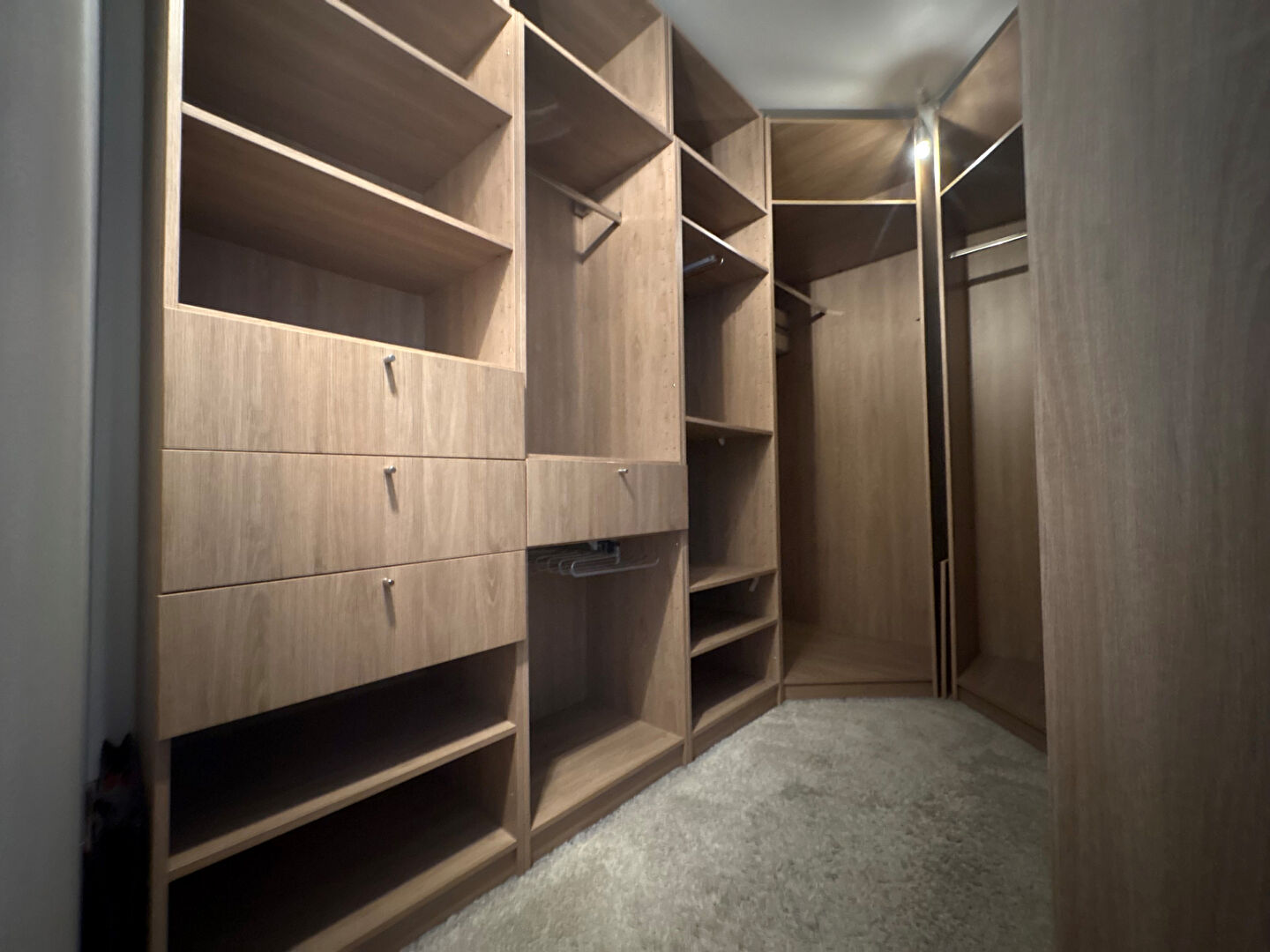L’entrée dispose de trois grands placards coulissants, qui offrent un bel espace de rangement. Le séjour et la cuisine américaine forment un espace de vie ouvert et agréable, avec un accès direct à la terrasse, entourée de verdure , où l’on peut profiter du chant des oiseaux.