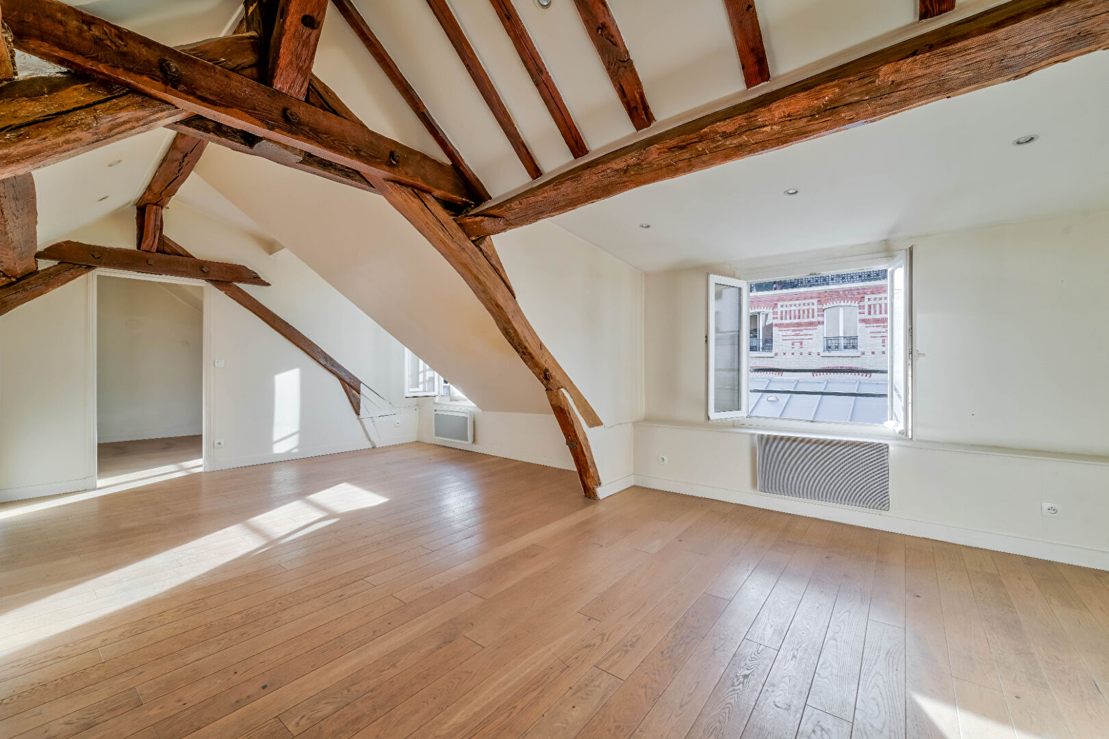 Au dernier étage d’un immeuble ancien de caractère, ce deux pièces de 45 m² (carrez) offre un cadre de vie rare, alliant authenticité, calme et élégance.