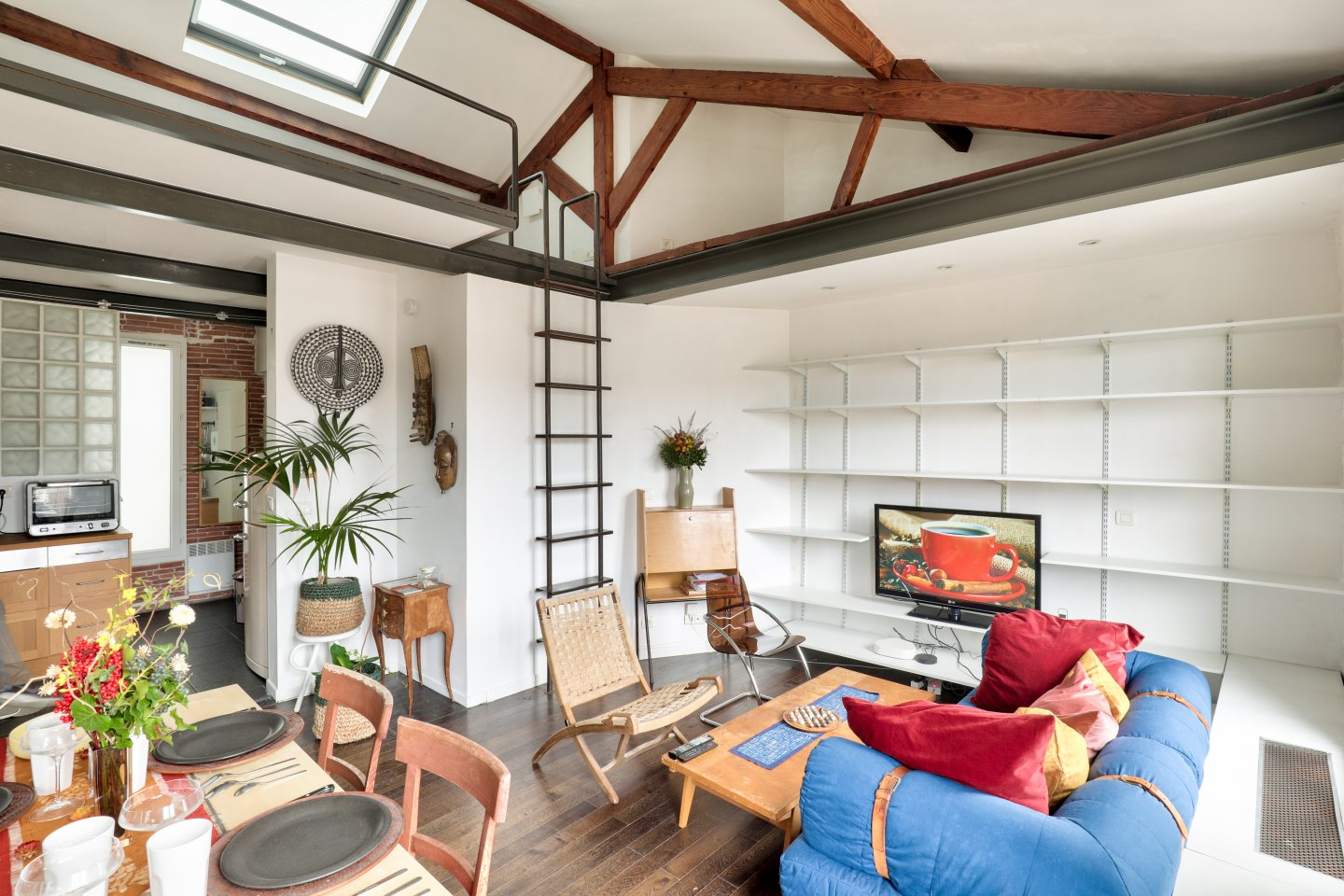 45m2 au sol. Venez découvrir cet appartement dans l’esprit loft avec une vue dégagée sans vis à vis. Au 2ème et dernier étage sans ascenseur. Il comprend une entre avec rangement, une cuisine aménagée et équipée, un séjour lumineux, une mezzanine avec de nombreux rangements et place pour vos vêtements et chaussures, une salle d’eau avec douche à l’italienne.