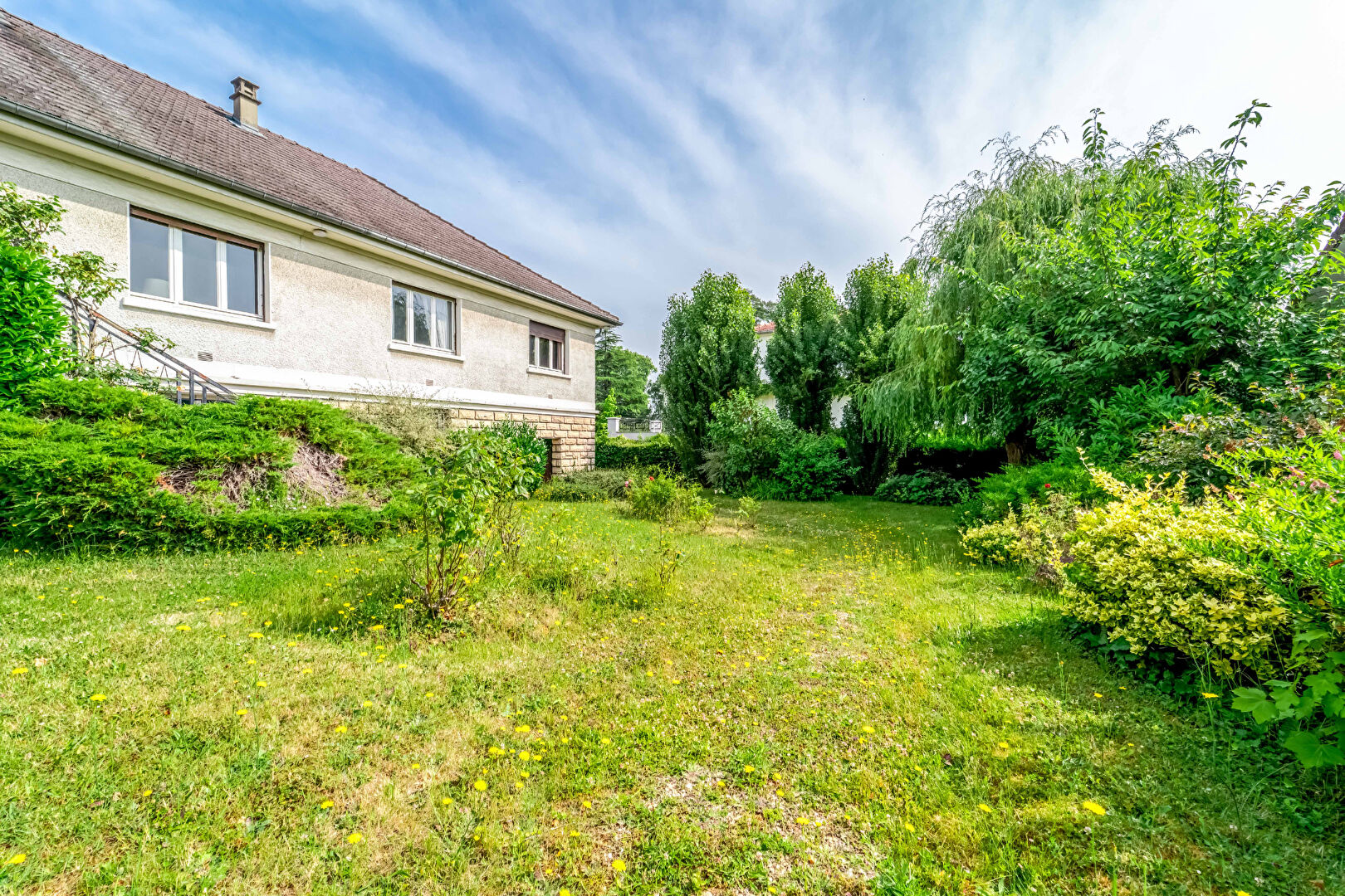 En rez de jardin, vous trouverez 2 grandes pièces avec une hauteur de 4,00 m sous plafond, un local technique avec la chaudière à gaz. Plusieurs options d’aménagement sont possibles comme ouvrir une grande baie vitrée donnant sur le jardin afin de récupérer de la lumière tout en exploitant des volumes hors normes, surélever la maison, la parcelle n’étant pas sur carrières.