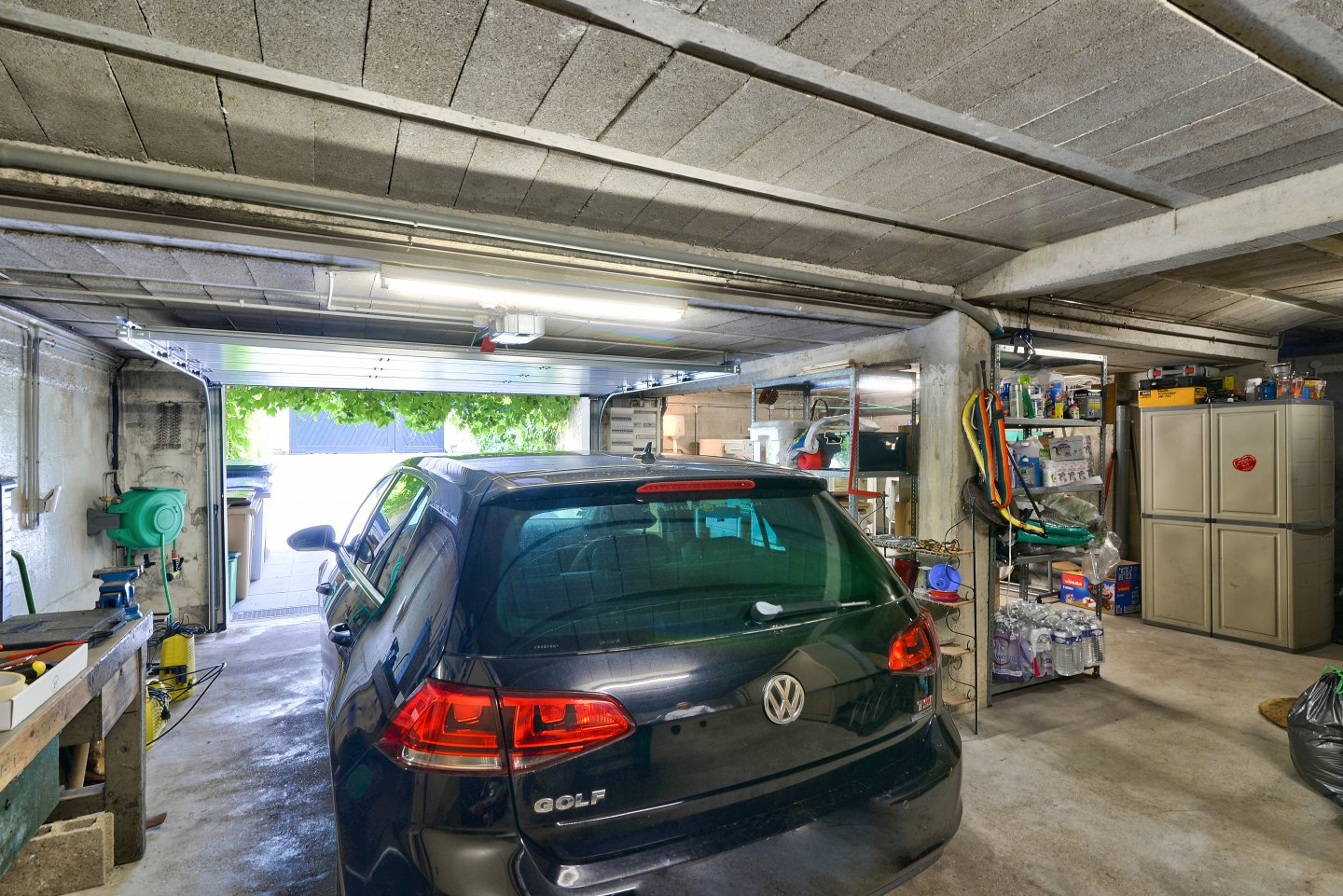 Au sous-sol, un grand garage (2 voitures possibles), une pièce totalement insonorisée, un coin atelier.