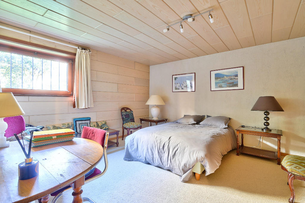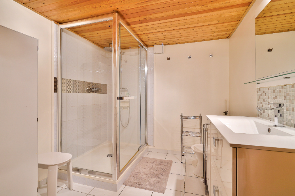 En rez-de-jardin, elle se compose d’une grande chambre indépendante avec une salle de douche, un dressing et un WC indépendant. Ensuite une chambre, une espace libre pouvant servir de salle de jeux, une buanderie et une pièce polyvalente pouvant être utilisée en salle de sport.
