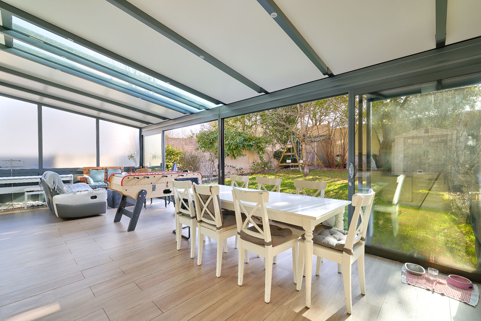 Rez-de-jardin : Une entrée accueillante, un salon lumineux avec cheminée, une grande véranda de plain-pied sur le jardin exposée sud-ouest idéale pour profiter des repas d’été
