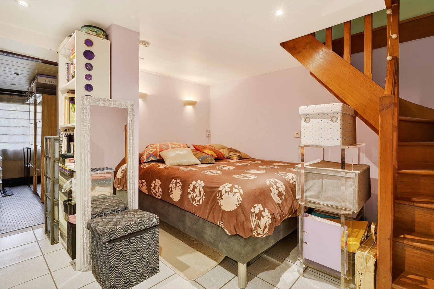 A l’étage, sous combles aménagés, se trouvent deux chambres ainsi que des espaces de rangement/dressing.