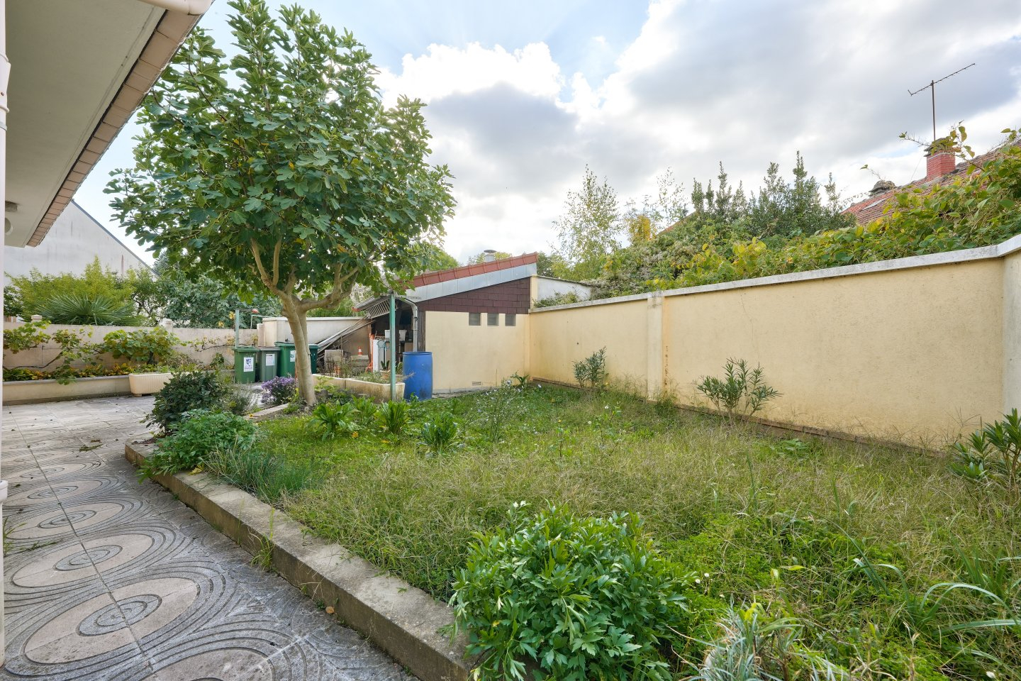 Le jardin à l’arrière de la maison accueille une dépendance.