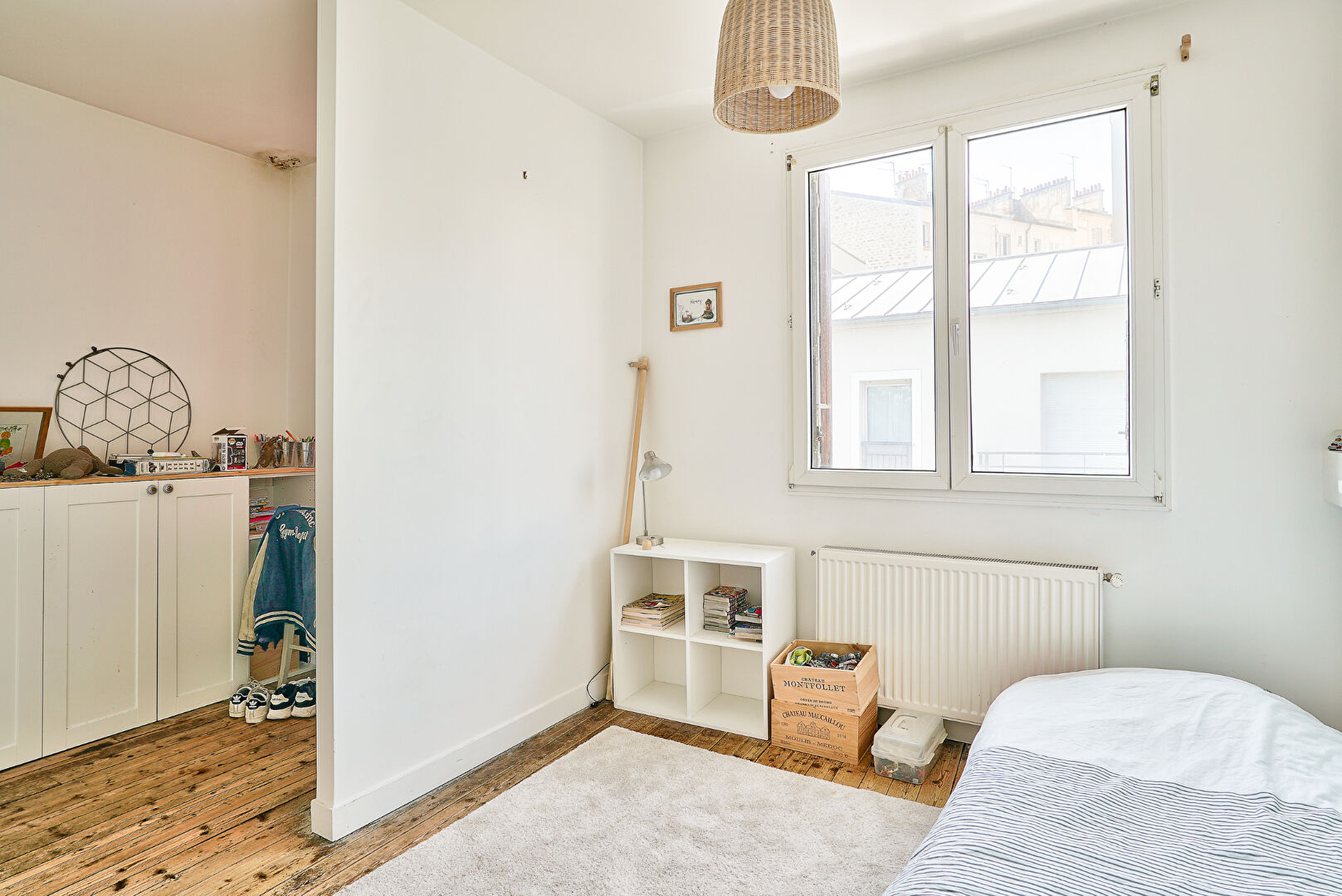 Au 1er étage, une entrée, une cuisine ouverte sur une salle de manger, un WC séparé, un vaste séjour avec une double exposition Nord Sud (le séjour et la salle à manger sont séparés par une verrière d’atelier), un WC séparé, un espace buanderie avec une machine à laver et la chaudière à gaz