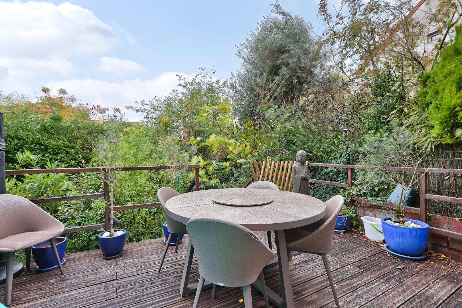 Implantée sur un terrain arboré, elle offre des espaces extérieurs des deux côtés, permettant de profiter de plusieurs ambiances : coin repas ensoleillé, jardin intime sans vis-à-vis ou espace détente au calme.