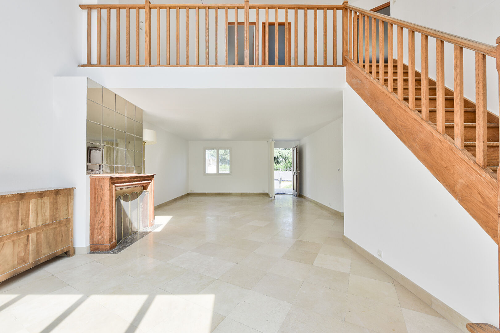 Au rez-de-chaussée, double séjour cathédrale avec cheminée ouvert de plain pied sur le jardin, suite avec salle d’eau et WC donnant sur la terrasse , cuisine séparée aménagée et équipée.
