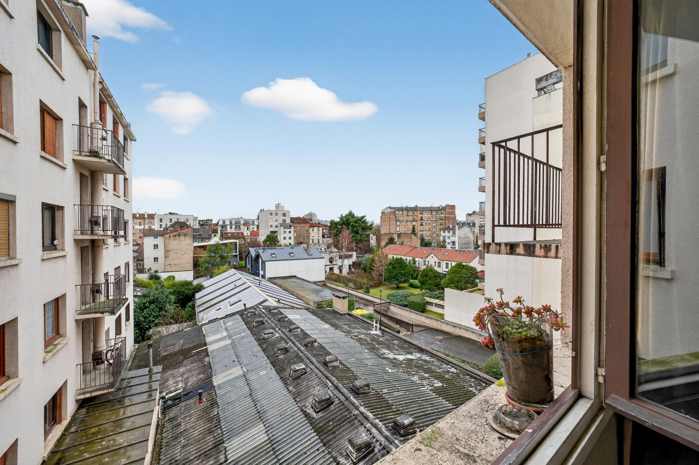 Dans un immeuble des années 1960 avec ascenseur, découvrez ce studio de 27 m² bénéficiant d’une vue dégagée et sans perte d’espace.